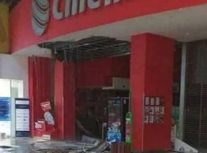 ¡Video! Por fuertes lluvias se desploma parte del techo de cine de Plazas Outlet Lerma