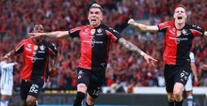 Atlas y Pachuca disputan la final de la Liga MX. En la imagen, un aficionado de Atlas celebra con la...